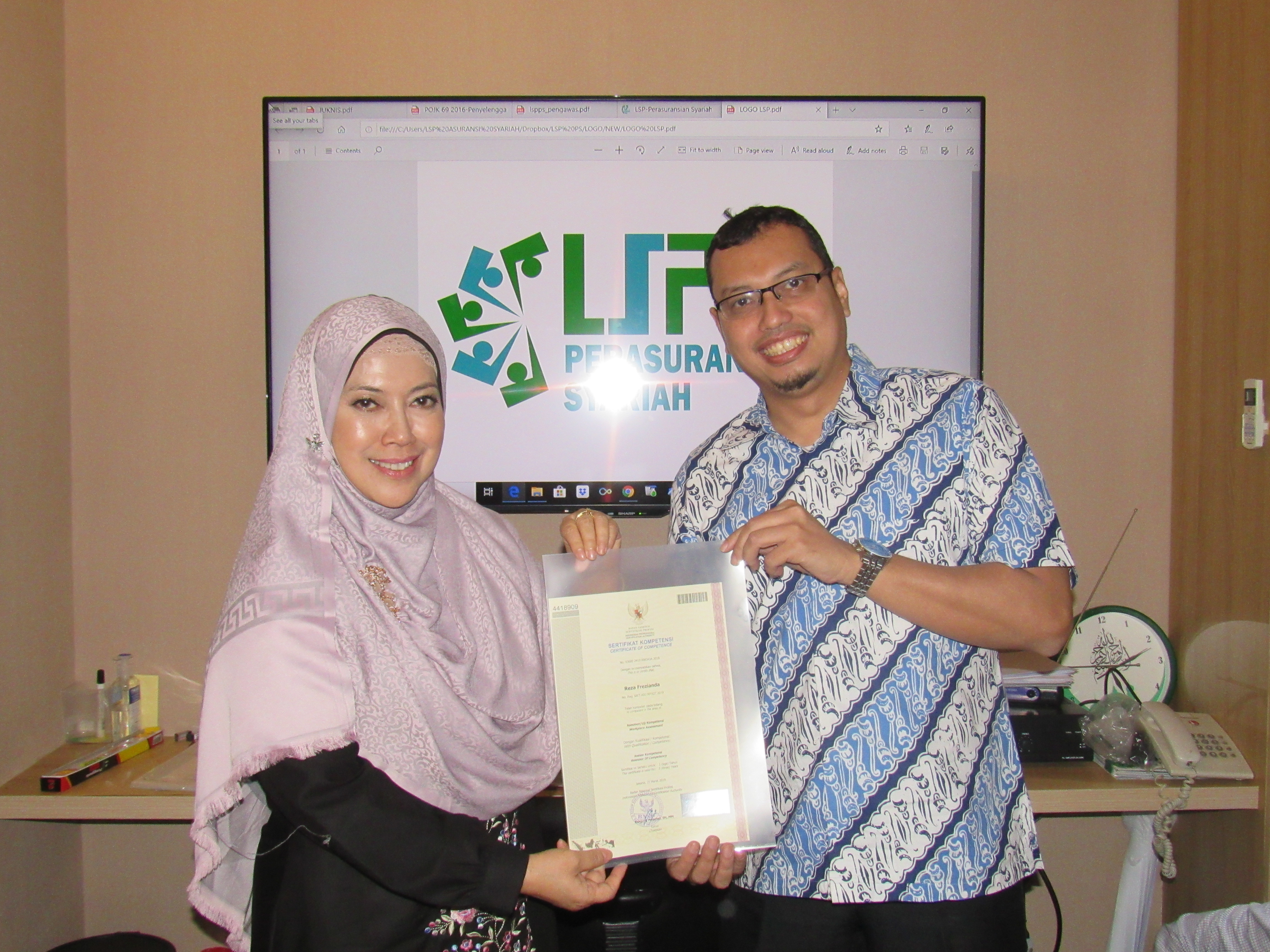 Direktur LSP Perasuransian Syariah, Yetty Rochyatini menghadiri acara penyerahan sertifikat kompetensi kepada Reza Frianda - salah satu asesor kompete...