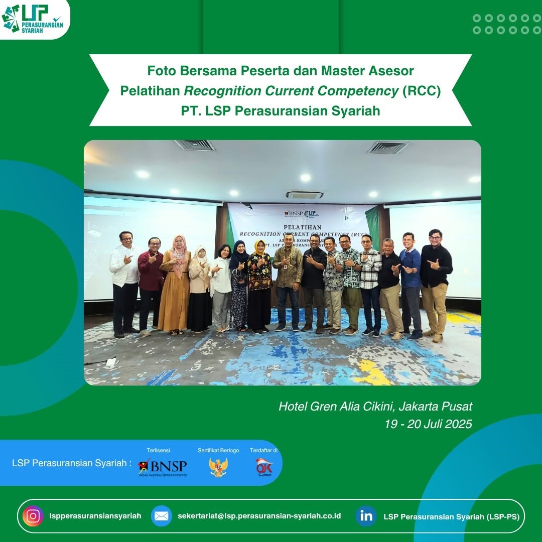 Alhamdulillah, telah terlaksana dengan lancar Pelatihan Recognition Current Competency (RCC) bagi para Asesor Kompetensi PT. LSP Perasuransian Syariah...